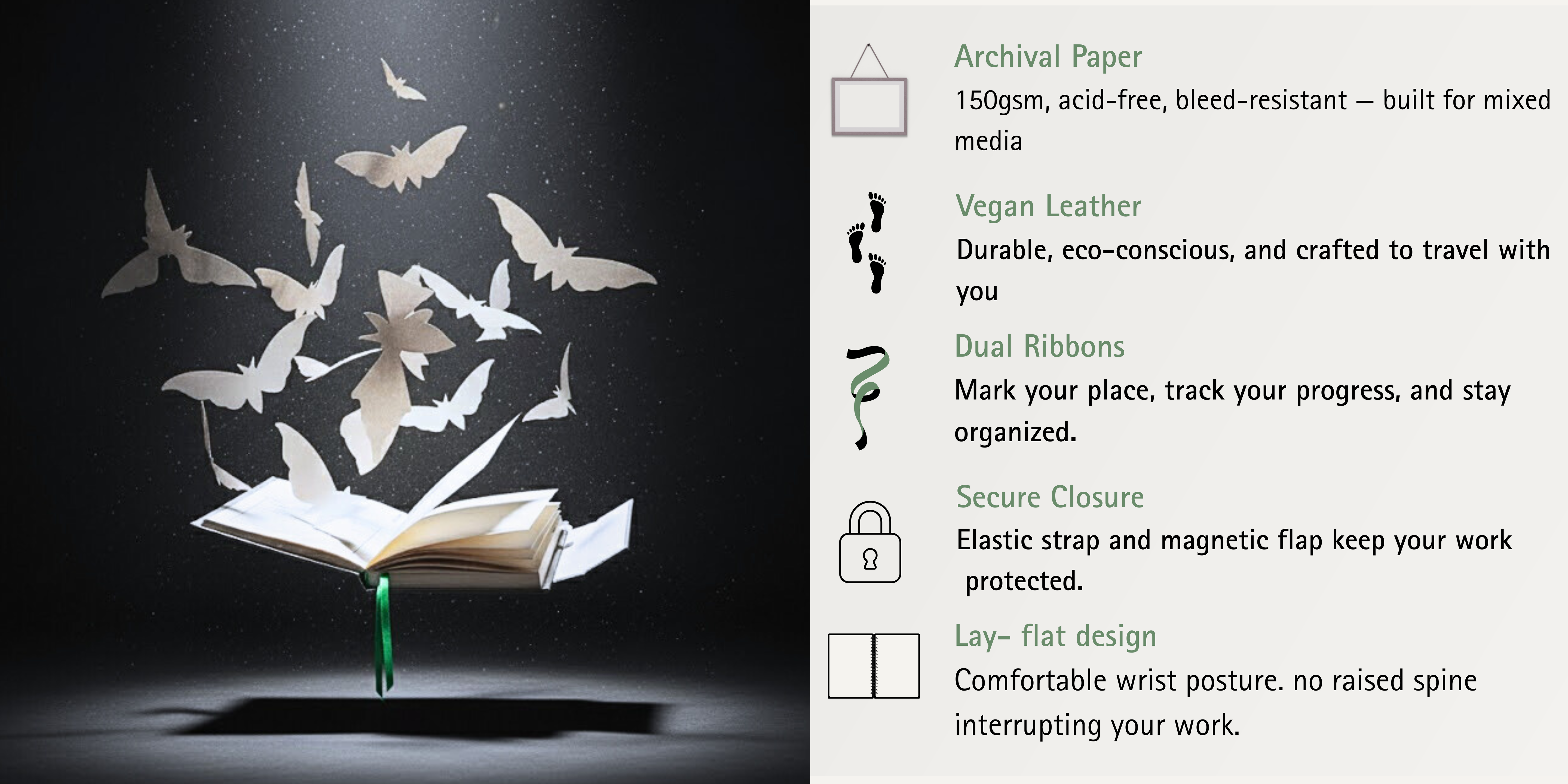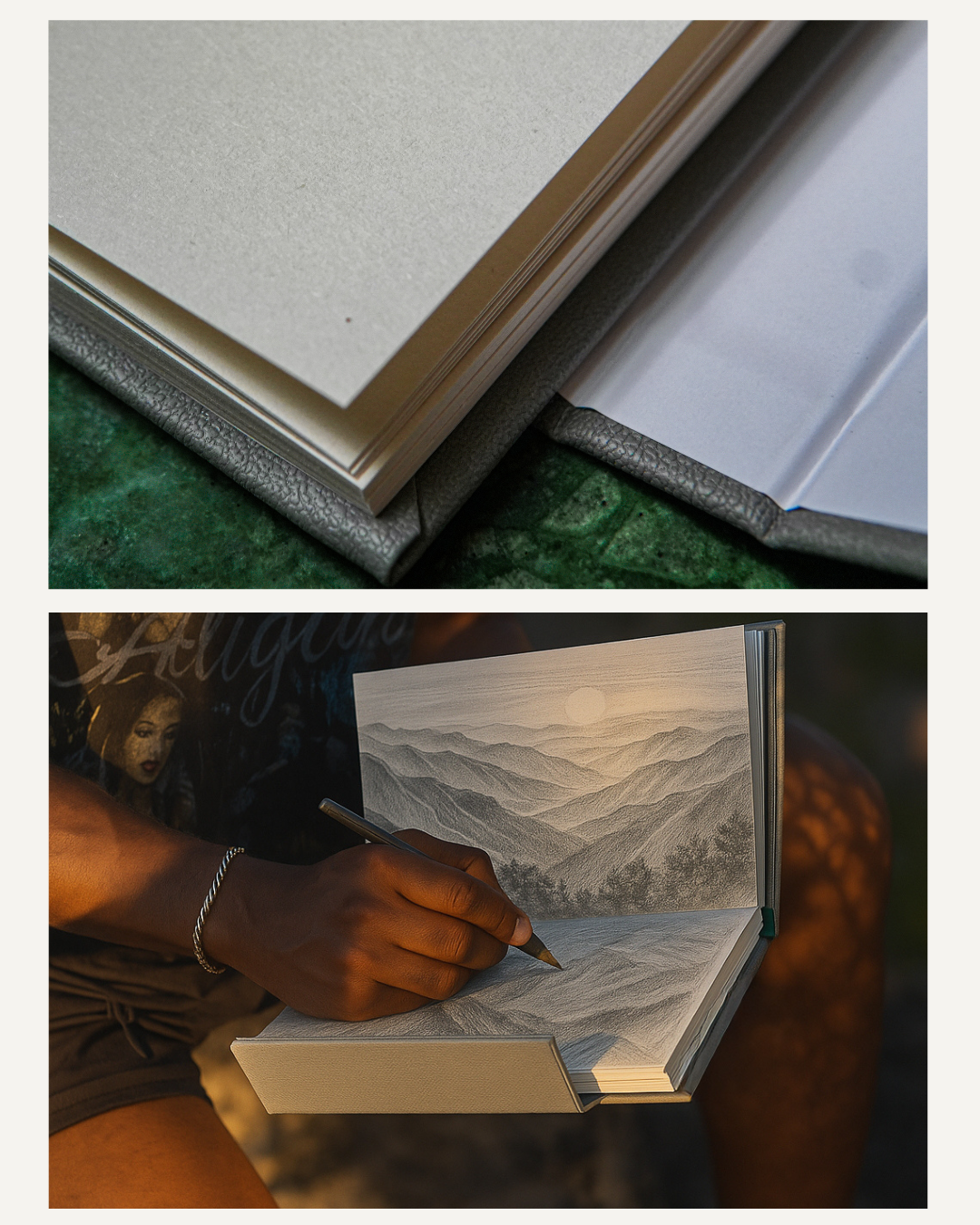 50gsm paper that handles pencil, ink, and paint without buckling.